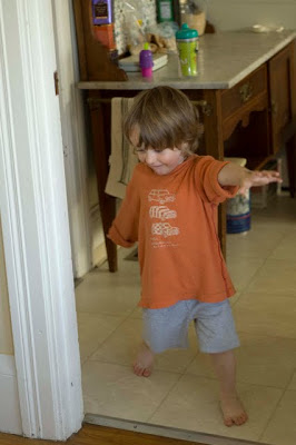 Yesterday, he went the whole day without a diaper. And only one accident, in the morning. Thanks in part to my friend Meg who met us midday at the toy store and suggested we buy a book of Thomas stickers to help the process along, Jonah has now earned about 15 stickers in two days, most of them for successes, and a few for really great tries.